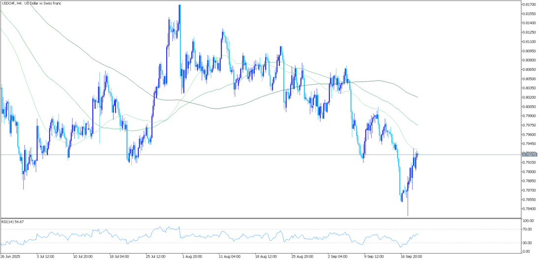 USD/CHF paritesi, Cuma günü Asya seansı sonlarında 0,7930 civarında iki günlük toparlanma hareketini sürdürdü. İsviçre Frangı, ABD Doları’nın (USD) güçlü seyrine paralel olarak değer kazandı. Bunun nedeni, ABD Merkez Bankası’nın (Fed) faiz oranlarını beklendiği üzere 25 baz puan düşürerek %4,00–4,25 aralığına çekmesiydi.