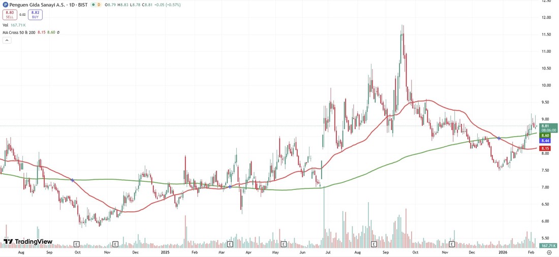 Şu an Penguen Gıda (PENGD) hissesi Borsa İstanbul’da yaklaşık 8,90 TL civarında işlem görüyor, gün içi volatilite ile 8,70–8,99 TL aralığında hareket ediyor ve hacim orta seviyelerde. Bununla birlikte hisse son 52 haftada yaklaşık 6,2 TL ile 11,8 TL arasında dalgalanmış durumda.