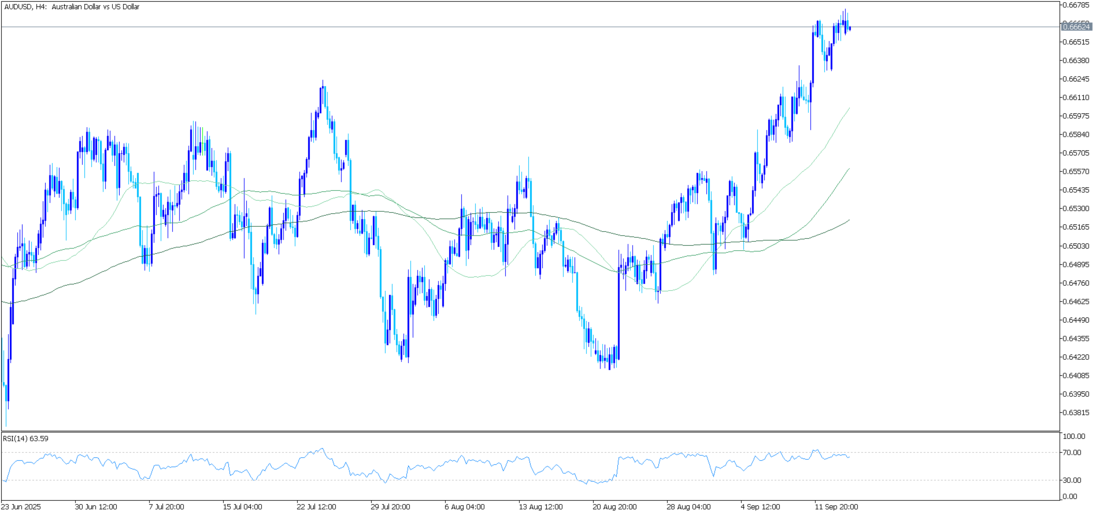 AUD/USD paritesi, Ekim 2024'ten bu yana en yüksek seviye olan 0.6766'yı hedefleyebilir, ardından yükselen kanalın üst sınırı olan 0.6840 civarına doğru ilerleyebilir.