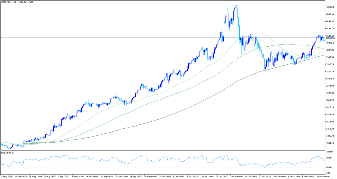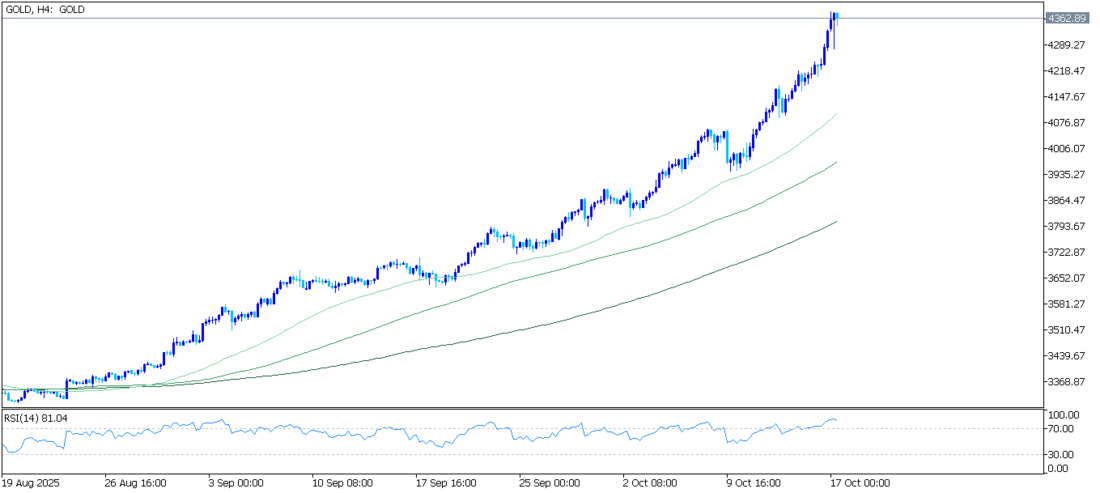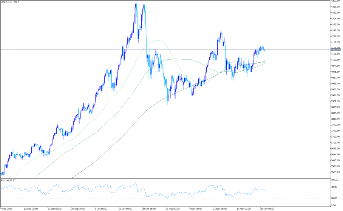 XAU/USD paritesi, şu anda 4.322,58 dolar civarında sabitlenmiş olan yükselen 200 periyotluk Üstel Hareketli Ortalama'nın (EMA) üzerinde tutunarak, genel eğilimin yukarı yönlü olmasını sağlıyor. Ortalamanın yukarı yönlü eğimi, geri çekilmeleri destekliyor. Hareketli Ortalama Yakınsama Sapması (MACD) çizgisi, sinyal çizgisinin ve sıfır işaretinin altında kalmaya devam ediyor, ancak yukarı doğru dönüyor. Negatif histogram daralıyor, bu da düşüş baskısının azaldığını gösteriyor.