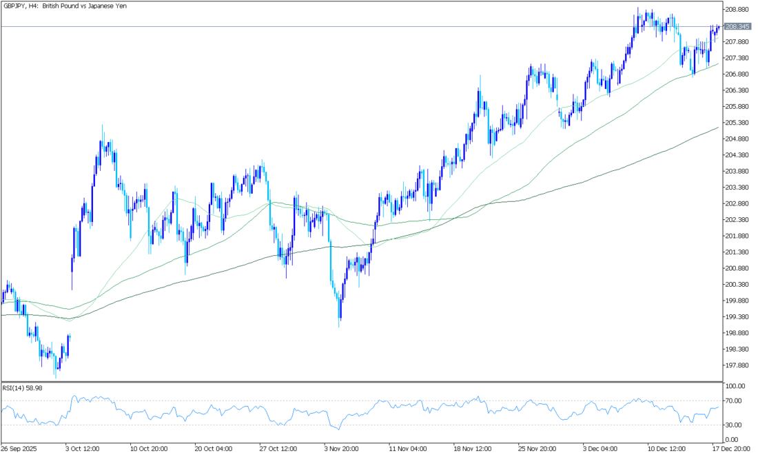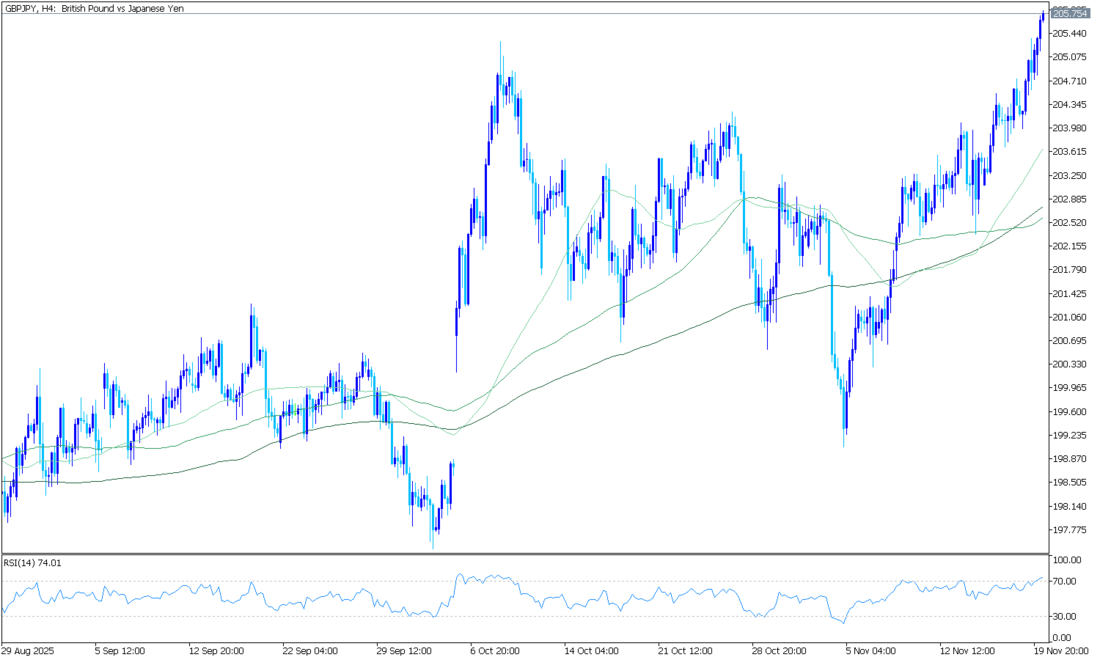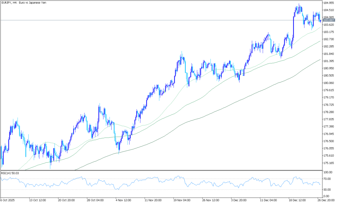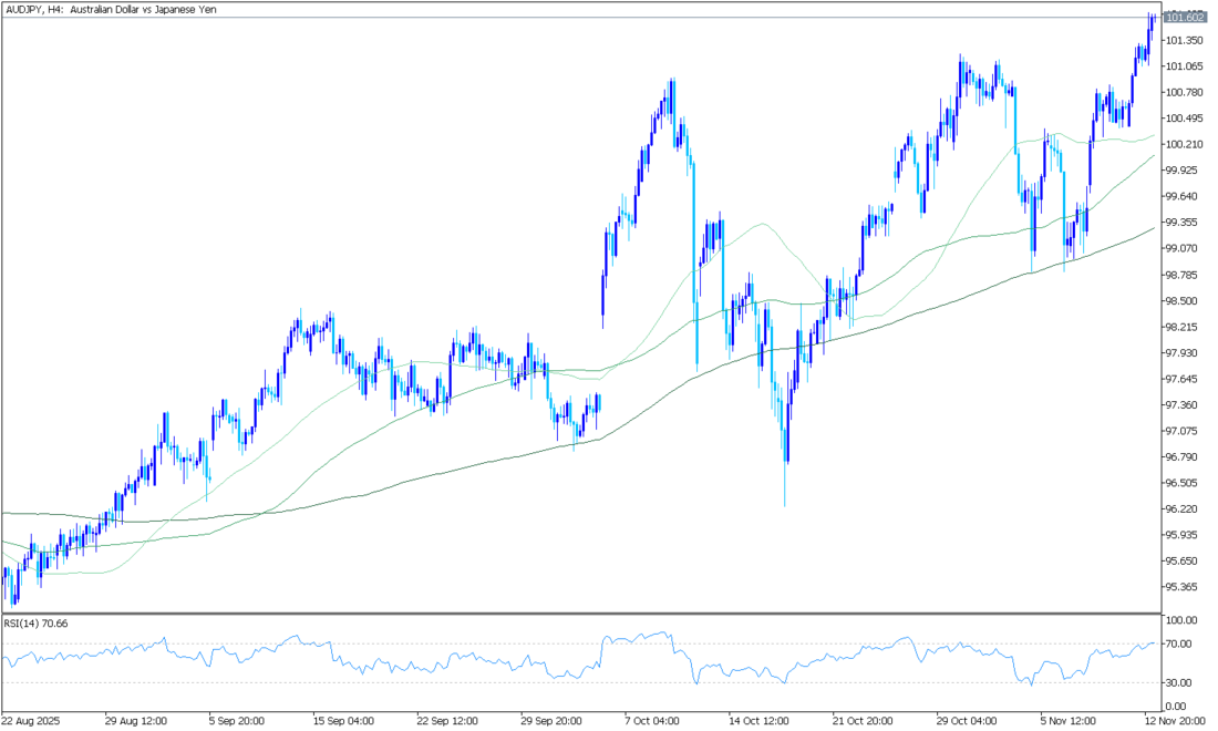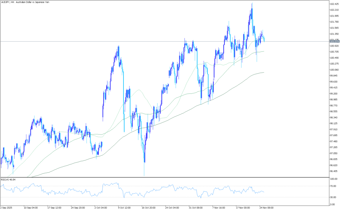 Günlük grafiklerde AUD/JPY, 101,52 seviyesindeki yükselen 100 günlük EMA’nın oldukça üzerinde işlem görerek genel yükseliş trendini koruyor. EMA istikrarlı şekilde yükselmiş durumda ve fiyat bu seviyenin üzerinde kaldığı sürece düşüşler destekleniyor. Fiyat, 106,52’deki üst Bollinger Bandı ile 105,21’deki orta band arasında yer alıyor ve yüksek seviyelerde güçlü alım ilgisini yansıtıyor. Son seanslarda bantlar genişledi, bu da momentumun arttığını gösteriyor. RSI (14) 66 seviyesinde bulunuyor; güçlü ancak aşırı alım bölgesinde değil.