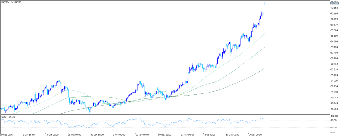 14 günlük Göreceli Güç Endeksi (RSI) 72,65 seviyesinde aşırı alım bölgesinde olup, konsolidasyona dönüşebilecek aşırı uzamış bir ivmeye işaret etmektedir. RSI'nin 70'in üzerinde kalması, güçlü ivmeyi teyit ederken, duraksamadan sınırlı yukarı yönlü hareket konusunda da uyarıda bulunmaktadır.