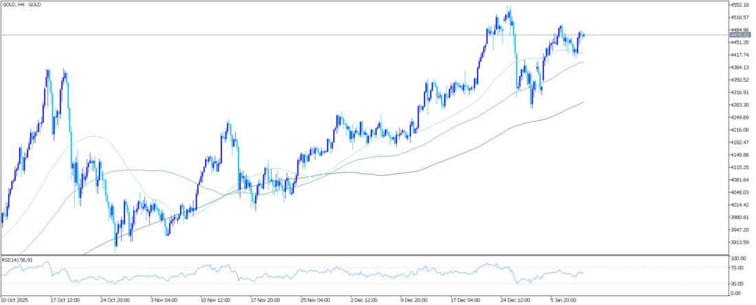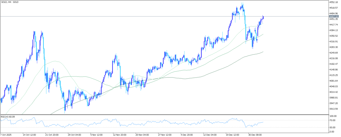 Altın (XAU/USD), Salı günü erken saatlerde ulaştığı bir haftalık zirveden hafifçe geri çekilerek, Avrupa seansına girerken 4450 dolar seviyesinin üzerinde, gün içi mütevazı kazançlarla işlem görüyor. Bununla birlikte, temel ortam yükseliş yönlü işlem yapan yatırımcıların lehine görünüyor ve altının en az dirençli yolunun yukarı yönlü olduğunu gösteriyor. ABD'nin Venezuela'daki askeri saldırıları, Suudi Arabistan ve BAE arasındaki artan siyasi gerilimler, İran'daki karışıklık ve uzayan Rusya-Ukrayna savaşı jeopolitik riskleri gündemde tutuyor. Bu da, güvenli liman değerli metalini destekliyor olarak görülüyor.