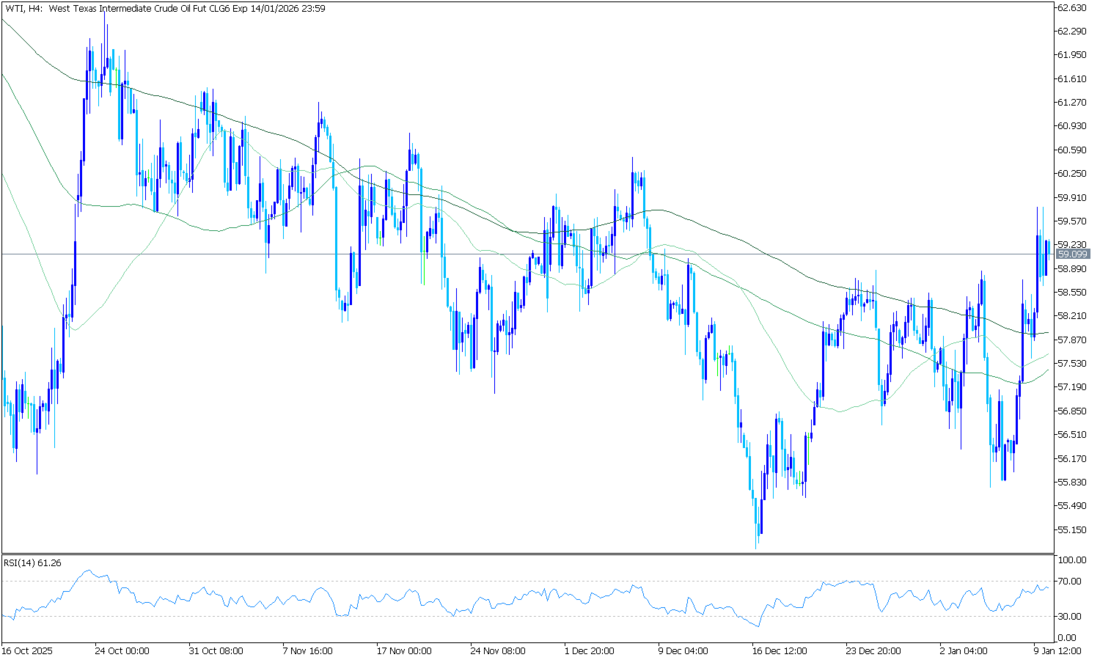 West Texas Intermediate (WTI) ham petrol fiyatı, Pazartesi günü Asya seansında yaklaşık varil başına 59,10 USD civarında işlem görerek üst üste üçüncü gün yükselişini sürdürdü. Petrol fiyatlarındaki artış, İran’daki protestoların tırmanmasıyla birlikte arz risklerinin güçlenmesinden kaynaklanıyor. İran, günlük yaklaşık 2 milyon varil petrol ihraç eden ve OPEC’in dördüncü büyük üreticisi konumunda olan bir ülke olarak, olası gerilimler küresel arz açısından ciddi bir tehdit oluşturuyor.